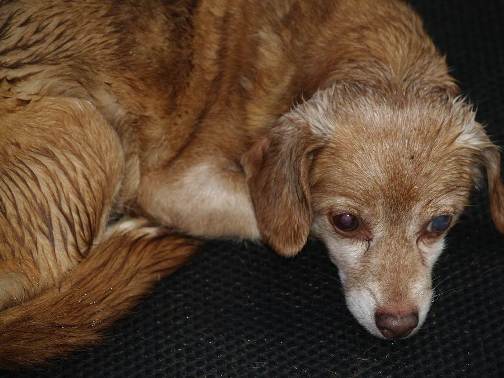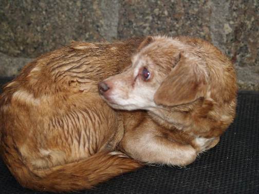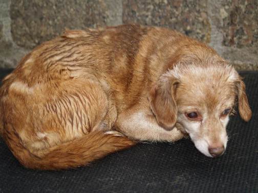 sich total verschlossen, sie kommuniziert mit niemanden. Ich dachte fast sie stirbt, daher habe ich sie berührt und sie hat nur nach mir geschaut, sich aber nicht gerührt. Sie steht unter Schock, weil sie und ihr Bruder nach 10 Jahren von einem auf den anderen Tag alles verloren haben ..., Zuhause, Herrchen, Liebe und Fürsorge. Sie verstehen nicht warum?