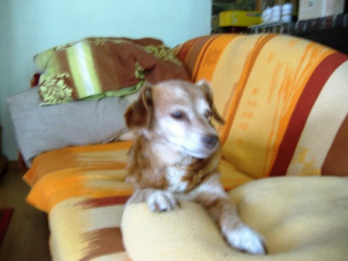 Eine zuckersüße, kleine Omi (ca. 13-14 Jahre alt), sehr verschmust und menschenbezogen.