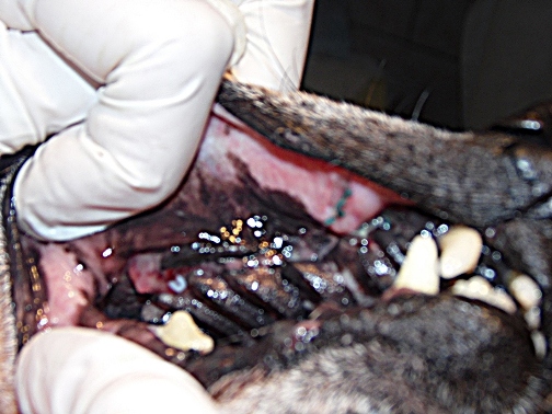 Die Tierärztin hat einige Zähne entfernt und gerettet, was zu retten war. Kika muss jetzt
