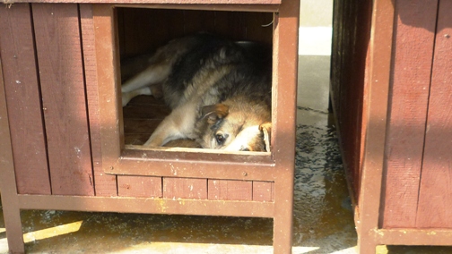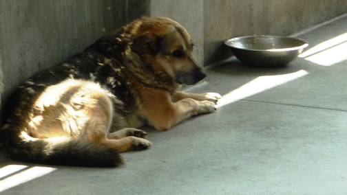 Wesen: Die ganze Zeit verbringt der Arme in der Ecke im Zwinger. Er traut sich kaum auf-zustehen. Vergil wirkt sehr traurig und depressiv, ruhig und leise. Ueber sein Wesen kann ich im Moment nicht viel mehr schreiben. Seine Kollegen im Zwinger sind sehr "starke " Hunde. Ich kann auf keinen Fall nur Vergil aus dem Zwinger rausnehmen um ihn besser kennenzulernen. Damit Vergil nicht in Gafahr geraet, muessen alle Hunde ausgefuehrt werden und dafuer brauche ich mehr Helfer. Ich arbeite aber daran !