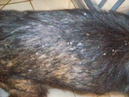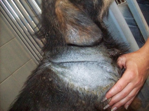 Hautprobleme und einen grossen Tumor seitwaerts am Schulterblatt. Der Tumor ist operativ entfernt worden, die Hautprobleme klingen - dank intensiver Behandlung - langsam ab.