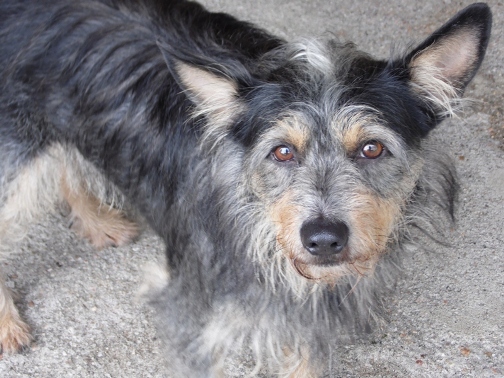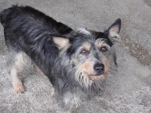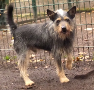 Redo ist ein kleiner, grau-brauner Mischlingsrüde. Er ist kastriert. Geboren wurde er ca.