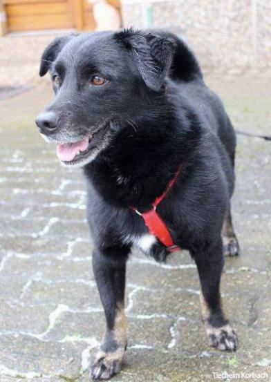 Baxter, immer auf der Suche nach menschlicher Zuwendung, lebt hier mit einer Hündin zusammen, Katzentest bestanden.