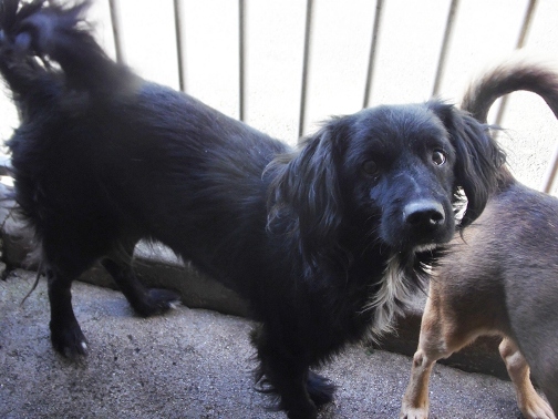 Beschreibung: Alfik ist ein kleiner schwarzer Rüde, der sehr traurig ist. Das TH-Leben ist nichts für ihn, meistens versteckt er sich in seiner Hütte. Zu den Menschen ist er lieb und freundlich. Als er an seinen Zähnen operiert werden musste, haben wir Marvel mit ihm in die Quarantäne gegeben, weil Alfik ohne ihn Angst hat. Ich glaube, Marvel hilft ihm, hier nicht ganz durchzu-