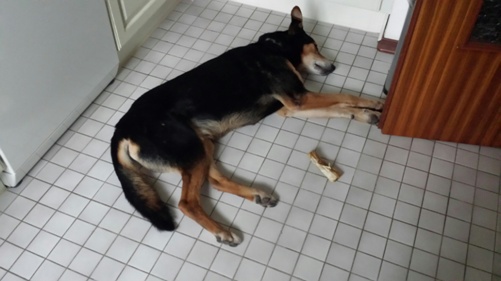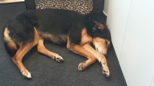 Rufi hat ein Problem mit dem linken Hinterlauf, er lahmt.