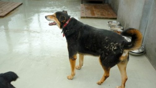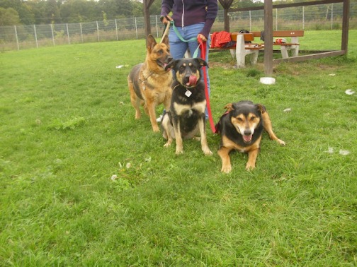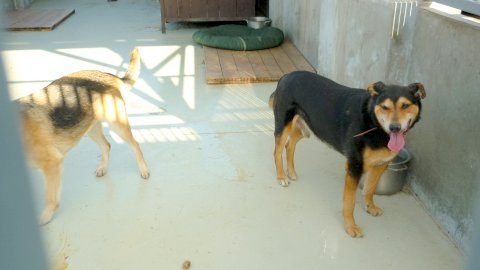 mit nur einer Schaeferhuendin gemeinsam einem Zwinger. Rufi scheint mit der netten Gesellschaft der Dame zufrieden zu sein. Die Huendin ist nicht immer ganz begeistert