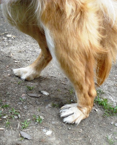 knochen mehr, nur etwas weiches. Der Hund benutzt den unteren Teil der Pfote als Fuss, deswegen ist das Bein kurzer und der Arme geht schief und humpelt so stark. Es scheint