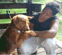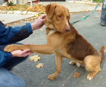Denwer ist auch im TH Hof ein beliebter Ausführhund, er zeigt sich liebenswert und sehr verschmust, und beim wöchentlichen Training der TH-Hunde ist er ein vorbildlicher Schüler.