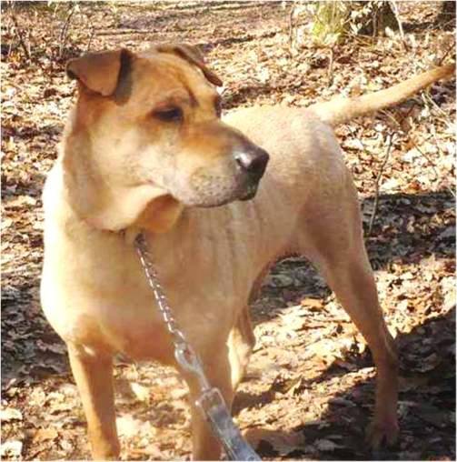 Mikado ist ein kastrierter mittelgroßer Shar-Pei-Mix. Er wurde ca. 2003 geboren und