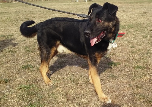 Er ist sehr kraftvoll, aktiv, gut leinenführig und sogar katzenverträglich. Waehrend seiner Vermittlung hat Obi problemlos mit einem kleinen Kind zusammengelebt.