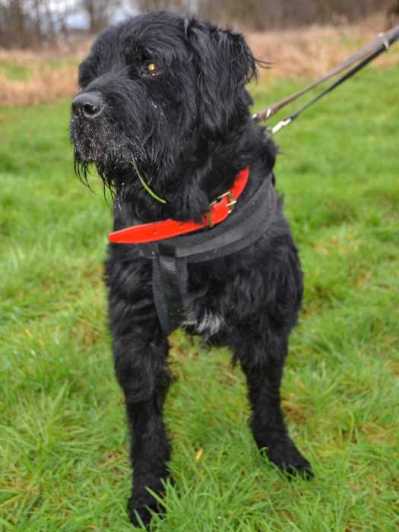 Sie ist ca. 2008 geboren und könnte eine Mischung aus Riesenschnauzer und Russischer Terrier sein. Lara war anfangs etwas „Kopfscheu“, aber dafür erhält man relativ schnell