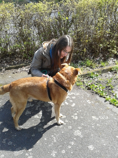 Bei der Übergabe am Sonntagnachmittag an sein Pflegefrauchen Franzi ...