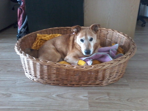 halten wollte. Aber leider hat der Arme Angst alleine zu Hause zu bleben, und er hat viel geweint, wenn die Frau arbeiten war. Die Nachbarn haben die Frau dann gezwungen, den Hund wieder abzugeben, und nun ist er wieder hier bei uns. Der Rudy ist noch fit und mun-