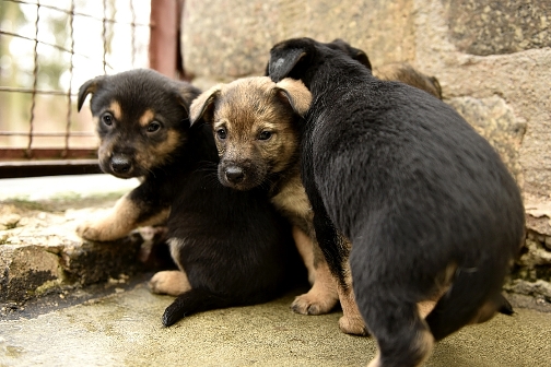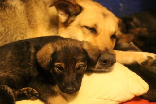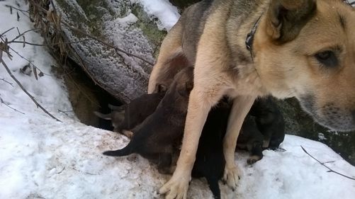 .... und kurze Zeit später eingefangen und mit ihren (im Wald geborenen) 10 Welpen