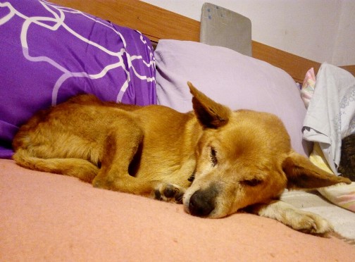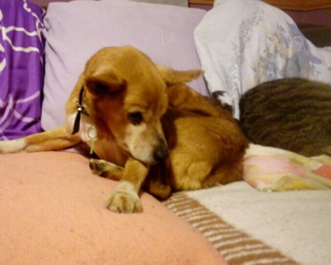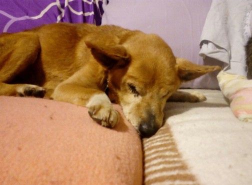 Alter und Allgemeinzustand ist keine OP der Hueften moeglich. Das Hundlein wurde von Freiwiligen von einem Verein gefunden. Nach einiger Zeit haben die Maedchen sogar seine Besitzer gefunden, aber die Nachbarn sagten, dass er so wie so meistens draussen schlafe