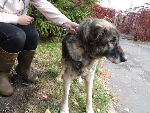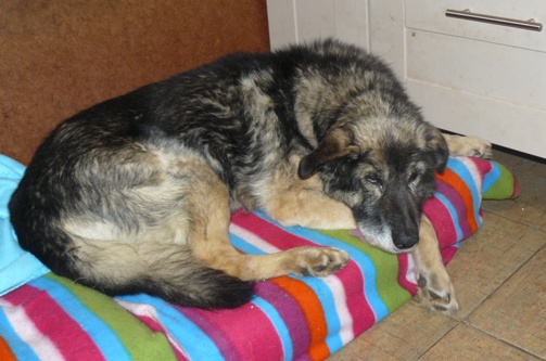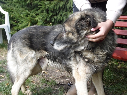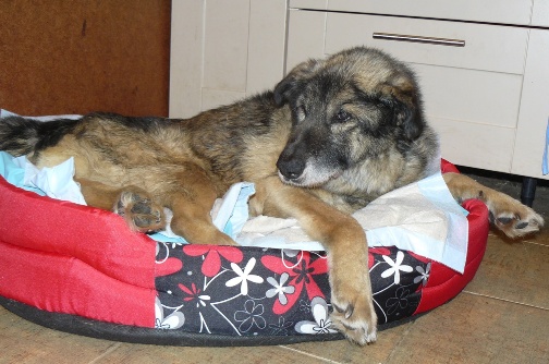 Der Aermste hat Narben am Hals, ganz wahrscheinlich hat er auch sein Leben an der Kette verbracht und jetzt schaetzt er sehr sein warmes Bettchen. Die Untersuchungen schlimm: