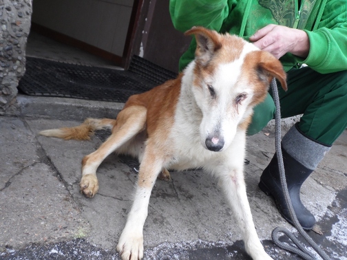 Ania hat uns diesen ganz argen Notfall geschickt. Es ist ein sehr alter, schwacher Rüde.