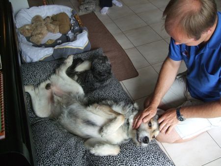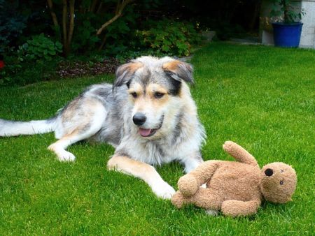 Verträglichkeit mit Artgenossen: hat Angst vor dominanten Rüden, mag Hündinnen