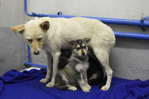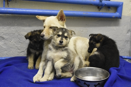 Shari mit ihren Welpen, die bereits alle ein Zuhause in PL gefunden haben.