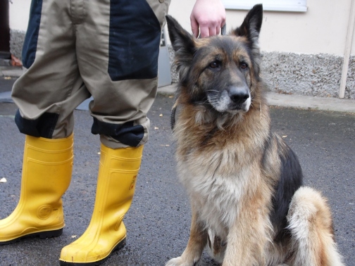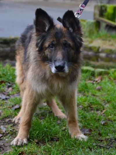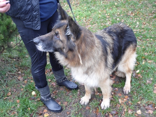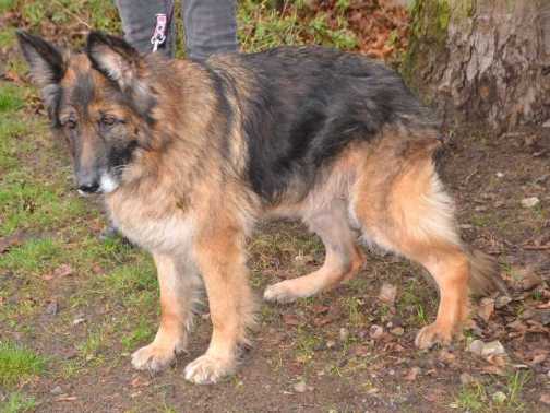 zu schließen, schon mehrfach geworfen. Die Schäferhundmischlingshündin ist ungefähr