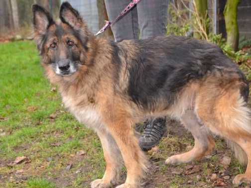 Kora wurde angebunden in Polen aufgefunden und hat wohl aufgrund ihres Gesäuges