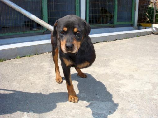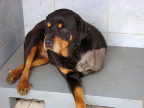 Die Rottihündin Hanna wurde schwer angeschlagen ins Tierheim gebracht. Sie wankte und man dachte an einen Knochenbruch. Hanna wurde zur Tierklinik gebracht. Es stellte sich heraus, dass es sich um Knochenkrebs handelte. Hanna wurde operiert, das Bein musste amputiert werden.