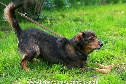 Verträglichkeit mit Artgenossen/Katzen: Rüde -, Hündin +, Katzen unbekannt