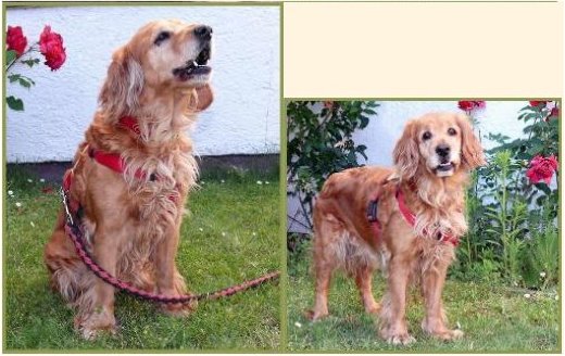 "Ich bin eine sehr brave und liebenswürdige Hundedame. Mein Pflegefrauchen hat mich gründlich gebadet und gebürstet; dies alles habe ich ohne Widerspruch über mich ergehen lassen. Ich bin stubenrein und mittlerweile sehr anhänglich. Treffe ich Hundekollegen beim Spaziergang, nähere ich mich freundlich und aufgeschlossen. Es macht Spaß, mit mir an der Leine zu laufen, denn ich ziehe nicht und verhalte mich draußen sehr angenehm. Die Menschen, denen wir begegnen, finden mein "Lächeln" sehr schön und ungewöhnlich. Meine 8 Jahre Lebenserfahrung sieht man mir in keinster Weise an und wenn Ihr mir die Chance auf ein eigenes Zuhause geben wollt, dann würde sich mein sehnlichster Wunsch erfüllen. Sucht Ihr eine nette Familienhündin, dann besucht mich bei meinem Pflegefrauchen."