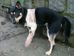 Der Hilferuf einer deutschen Tierschützerin kam auch zu uns und wir entschieden, daß wir dem armen Kerl helfen werden. Nun ist Junior stationär untergebracht. Wir überlassen die Entscheidung einer sehr erfahrenen Chirurgin, sie wird mit an Sicherheit grenzender Wahrscheinlichkeit Junior operieren und nach der komplizierten OP einen äußeren Fixateur anlegen, denn das Bein wird wahrscheinlich gestreckt werden müssen.