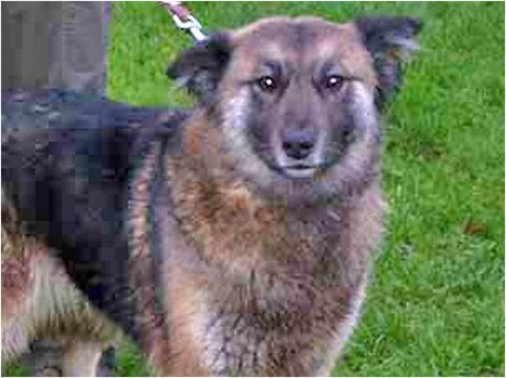 "Mein Leben war bisher ein Zwinger, viel mehr habe ich noch nicht gesehen. Durch diese jahrelange Haltung habe ich einen Zwingerkoller. Die im Tierheim geben sich richtig Mühe mit mir ( ich lebe hier in einem großen Auslauf ) und seither drehe ich mich gar nicht mehr so oft. Meine neuen Leute sollten nur ein großes Herz haben und viel Zeit zum Schmusen. Kinder und andere Hunde sind kein Problem für mich."