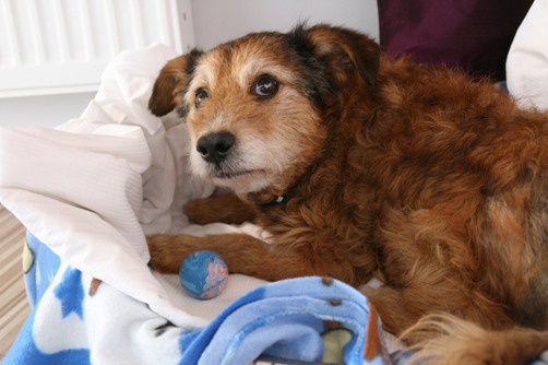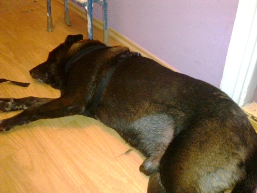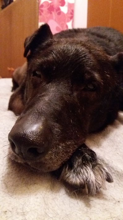 Gestern hat sich Demos gefreut wieder zu Hause zu sein, aber er war sehr erschoepft. Er lag nur und