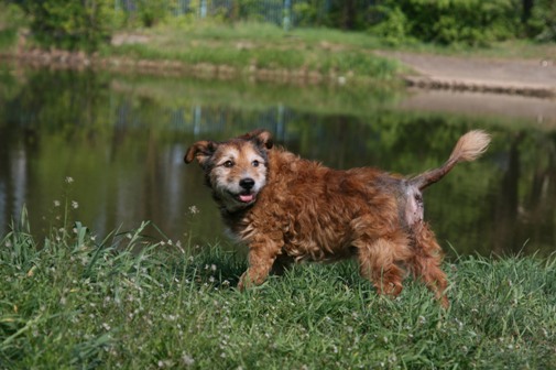 Als Pankracy zu uns kam, war er so schwach, vernachlaessigt und krank, dass er sich kaum auf den Beinen halten konnte. Dazu war er halbkahl mit sehr kranker Haut, kranken Nieren und einem grossen Tumor am After.