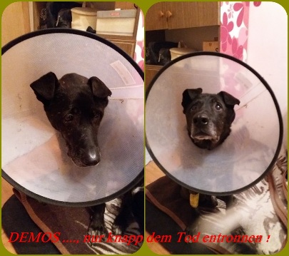 tete, dass Demos wieder in der Klinik sei und entweder direkt operiert oder sofort ein-geschläfert werden müsse. Er hatte nun doch eine Magendrehung, zudem war die Milz tumorös und in Mitleidenschaft gezogen. Sie fragte, ob wir in der Lage seien, die nicht unerheblichen Kosten (OP, stat. Behandlung, Medikamente, etc.) zu übernehmen.