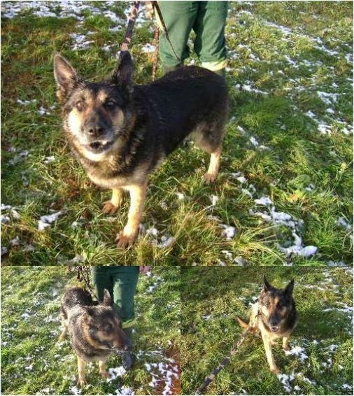 ist ein kniehohe Schäfi-Mix-Hündin, die Grundkommandos kennt und gerne