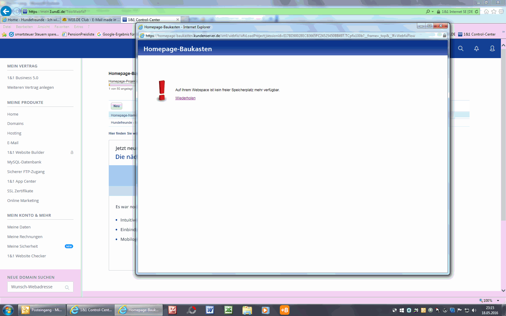 Endlich steht unsere Webmasterin für die Aktualisierung der HP wieder zur Verfügung, da spielt uns der Homepage Baukasten einen Streich.
