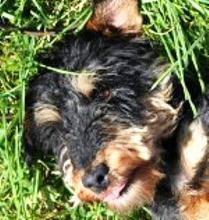 "Ronny taut langsam auf, mit ein bißchen Beruhigung konnten wir ihm die ganzen Filzplatten entfernen. Zum Vorschein kam ein richtig süßer Knuddelbär, der noch sehr ängstlich ist. Aber das kriegen wir hin. Mit Joghurt und Käsestückchen aus der Hand versuchen wir, uns in sein Vertrauen zu schleichen. "