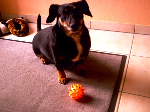 Sie zeigt auch eine dominante Seite. Als mein Großvater mit seinem Schäferhund zu besuch war, stellte sie direkt klar, dass das hier ihr Zuhause ist und dass er sich nach ihr richten muss. Es war lustig anzusehen, wie sich ein ziemlich großer Schäferhund einer kleinen Dackeldame unterordnet.