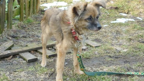 ELLA, ca. 16-17 Jahre alt, wurde aus dem TH Wroclaw gerettet, war sehr abgemagert, hat Tumore an der Gesäugeleiste, schlechte Werte besonders in Bezug auf Bauchspeicheldrüsenenzyme und HGB (Hemoglobin). Ella bleibt für immer bei Kasia!