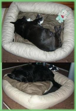 Die kleinen "Hundesofas" müssen wohl erst noch als das Ihre angesehen werden, aber wir sind froh, die beiden zusammen gelassen zu haben, und können Ihnen noch paar schöne Jahre geben.“