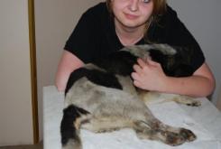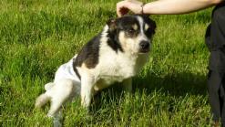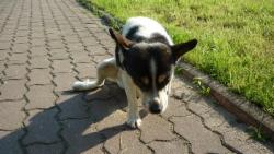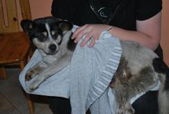 Iwona schreibt: "Der kleine Hund hat im einen Dorf in der Naehe von Wrocław gewohnt. Er hat ein Zuhause und Besitzer gehabt - theoretisch ganz normales Leben von einem Hofhund. Das Leben sah bestimmt nicht rosig aus, aber ging es ... Bis zu dem Tag wann der Autounfall passiert ist ... Nach dem Unfall haben der Autofahrer, der den Unfall verursacht hat, so wie auch die anderen Bewohner dem Hund KEINE HILFE geleistet !!! Der Hund, im Schock, halbtot, schwer verletzt, mit den hoellischen Schmerzen, hat den Weg zurueck nach Hause gefunden. Er hat seine letzte Kraefte zusammengenommen und er hat sich muehsam nach Hause geschleppt . Der kleine Hund hat die Hoffung gehabt , dass er zu Hause die Hilfe bekommt . Aber .... Auf den kleinen , treuen Hund hat keine Hilfe gewartet. Die Menschen , die der kleine Hund so geliebt hat , haben dem kleinen Hund die Tuer vor der Nase zugemacht !!!3 lange Wochen hat der kleine , hilfslose Hund vor seinem Haus verzweifelt auf die Hilfe gewartet. Er hat sich, die Beine nachschleppend bewegt. Gegessen hat er das , was er gefunden hat. Die Floehe haben ihn lebend gefressen. Er starb langsam - unvorstellbare Quall ! Heute kam die Rettung. Die Tierwache hat den Hund gefunden! Wir haben die Benachrichtigung von der Tierwache bekommen . Schnelle Entschiedung - der Hund kommt nicht ins Tierheim , da hat er keine Chance ! Er bleibt auf dem Pflegeplatz bei Magda. Der Hund ist schon untersucht und geroentgt worden . Die Diagnose : - Wirbelsaeule gebrochen - die Hinterpfoten gelaehmt"