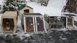 Die Hundehütten sind auch alle mit Decken bestückt. Stroh nehmen sie nicht so gerne, da es in den Holzspalten hängen bleibt und nicht richtig zu entsorgen ist. Die Decken nutzen sie aber. Hier können sie immer wieder neue gebrauchen, da die alten ja schnell schmutzig sind.