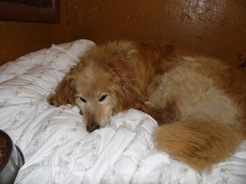 Jelenia Góra. Er liegt nur teilnahmslos in einer Ecke des Zwingers und scheint sich bereits aufgegeben zu haben. Senior braucht ganz dringend unsere Hilfe.