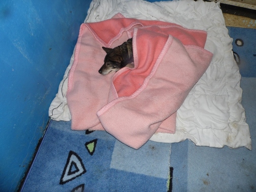 Die Kessi ist wirklich eine sehr alte, sehr arme Hundchen, außerdem stark erkaeltet.
