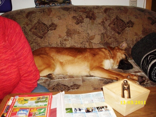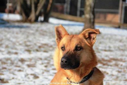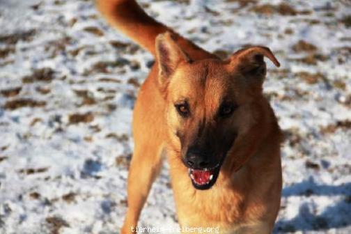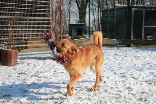 Wesen : Leider schon wieder ein schuechterner junger Hund, der aber den Kontakt zu den Menschen sucht. Bewohnt gemeinsam mit Tytus und Denwer einen Zwinger. Verträgt sich gut mit Rüden.