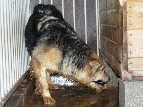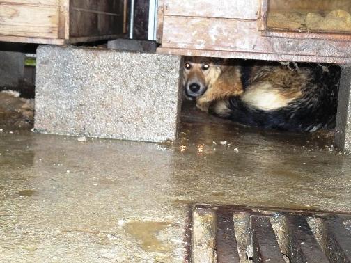 Wesen : Einfach nur Angst ! Die Arme liegt ganzen Tag und Nacht unter der Huette, egal ob es kalt, nass, hell oder dunkel ist. Nur ganz selten in der Frueh geht sie raus aus ihrem Loch. So ängstlich war sie schon gefunden worden. Im TH gibt es keine Moeglichkeiten mit ihren Aengsten zu arbeiten und der seltene Kontakt mit Menschen macht die Lage nicht besser. Vertraeglichkeit mit Artgenossen : +
