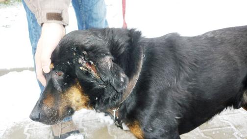 Beim letzten Mal wurde ihm fast das linke Ohr abgerissen ! Auch Duke ist dank Iwonas Einsatz noch im Isolierzimmer untergebracht. Wenn er nicht mitreisen darf, muss er zurück ins Rudel, was seinen Tod bedeuten könnte.