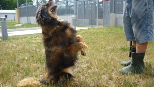 Mex ist vertraeglich mit den anderen Hunden im Zwinger. Aber er ist sehr eifersuechtig um die Aufmerksamkeit der Menschen.