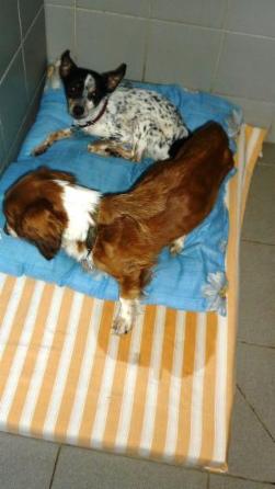 Ich glaube , dass die beiden Huendinnen zusammen gehoeren, denn sie sind gemeinsam gefunden worden. Der Gesundheitszustand, besonders von der schwarz-weissen Huendin,