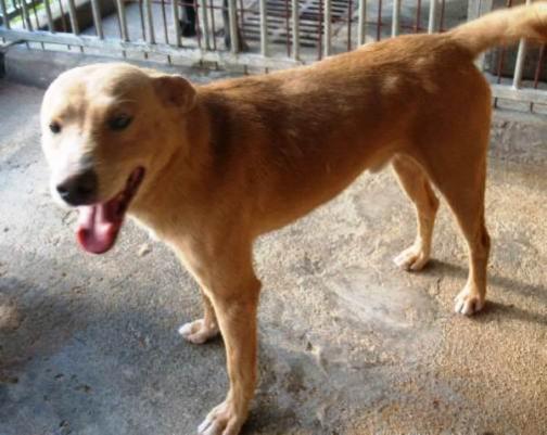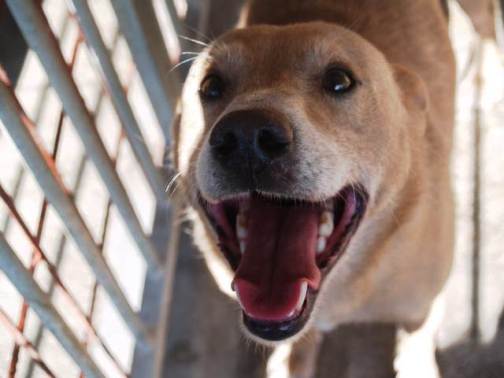 Der blonde Rüde soll neun Jahre alt sein, wirkt auf uns aber deutlich jünger.