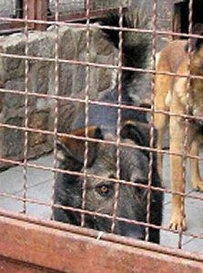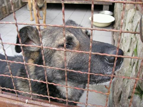 Tierheim lebt er in einem winzigen Zwinger, und der Blick aus seinen